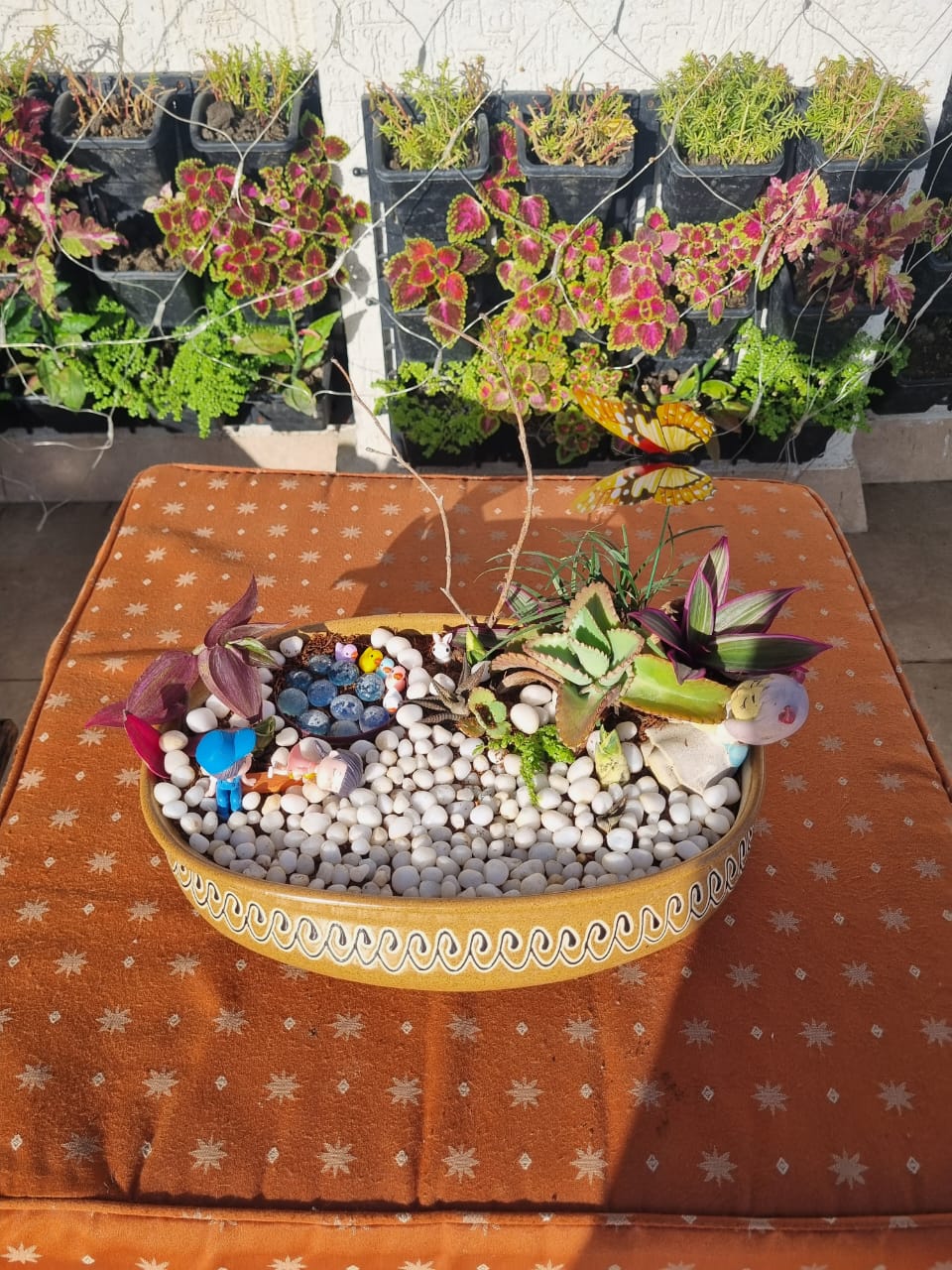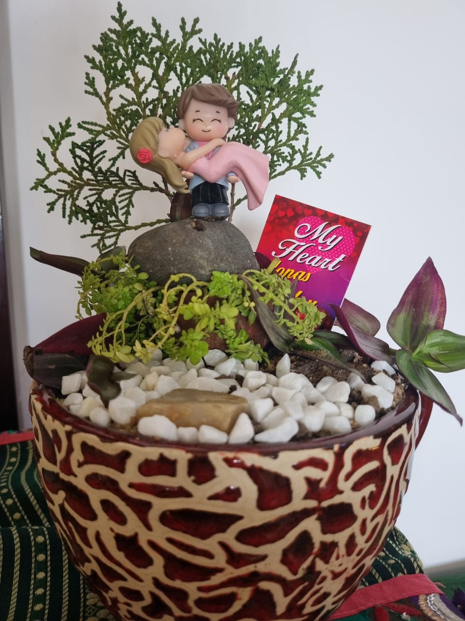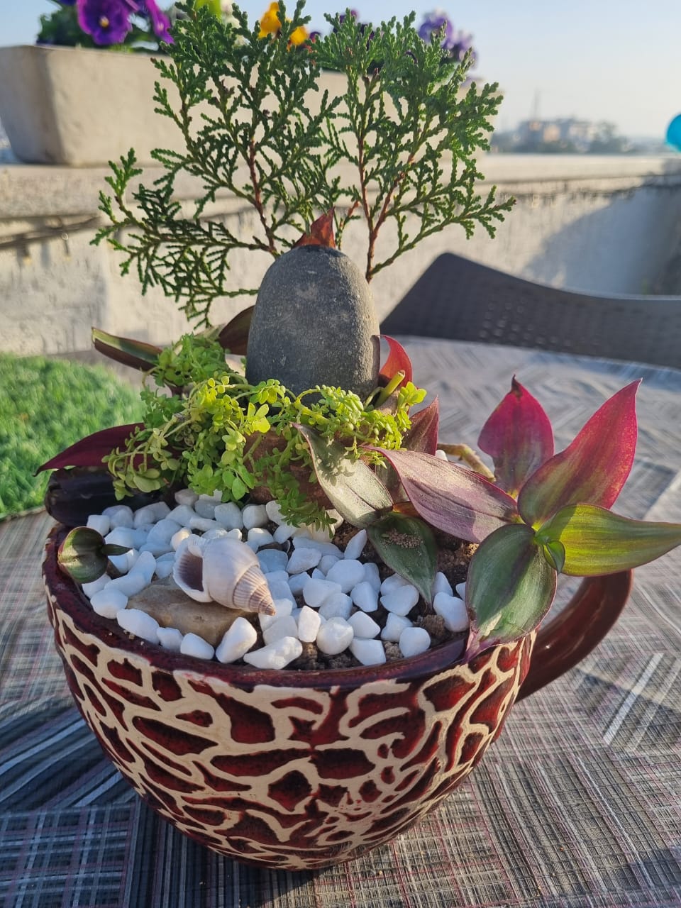 God speaks through His Creations, Showers His blessings in the form of Flowers, Fruits and Fragrance. That's what my creativity, urges me to create. The childhood dreams of a fairyland, a rainforest of creatures, an exciting world of zoo, a park with pond and ducks, a love hut of dreams, and many more, all have found some form or expression here. My Mini garden series are aptly titled as, 'Innate Expressions.' Enjoy Peace, tranquility, joy and fun in them.