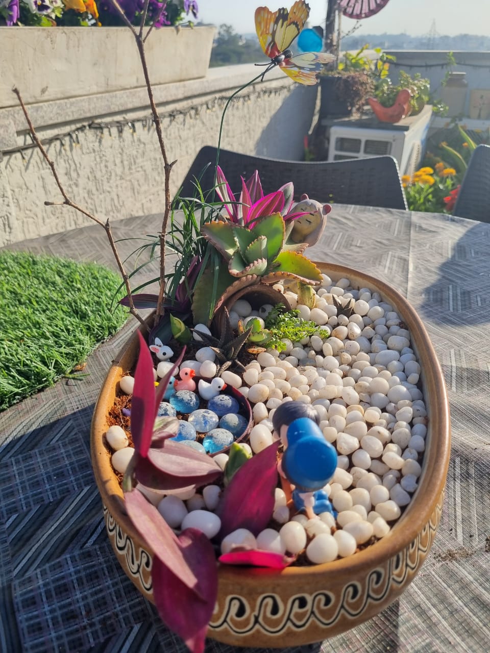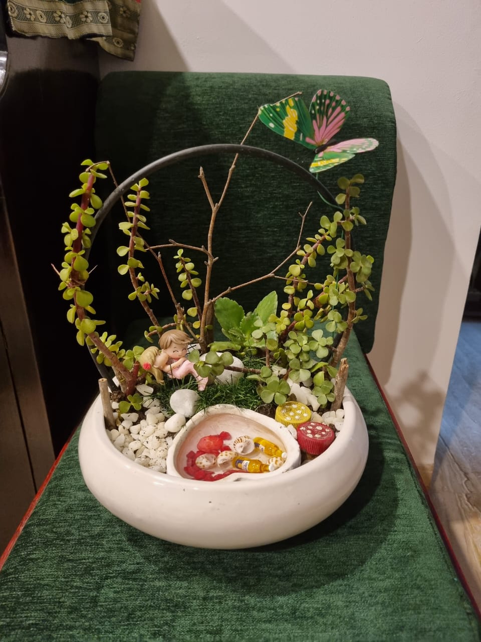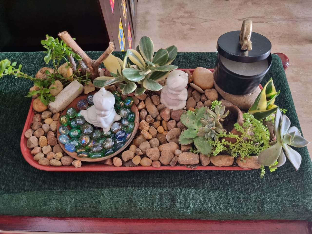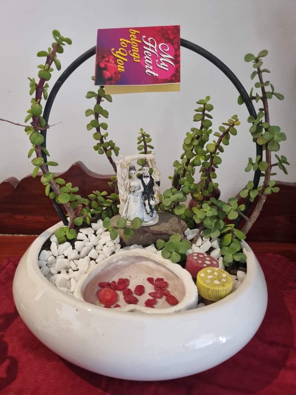 God speaks through His Creations, Showers His blessings in the form of Flowers, Fruits and Fragrance. That's what my creativity, urges me to create. The childhood dreams of a fairyland, a rainforest of creatures, an exciting world of zoo, a park with pond and ducks, a love hut of dreams, and many more, all have found some form or expression here. My Mini garden series are aptly titled as, 'Innate Expressions.' Enjoy Peace, tranquility, joy and fun in them.